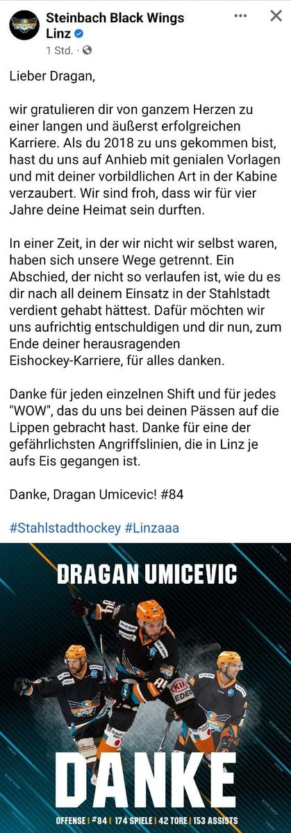 Dragan Umicevic, einer der mMn. besten Linzer der letzten Jahre beendet sein Karriere