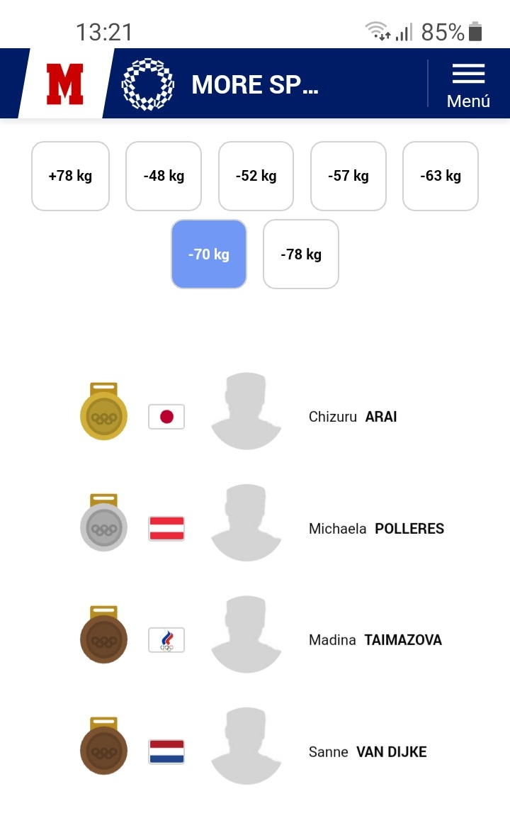 Nein, es waren beide Kämpfe in der Klasse bis 70 kg und es gibt auch zwei Gewinnerinnen der Bronze-Medaillie.