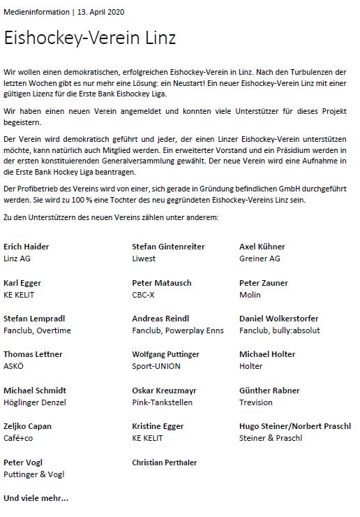 Vielen Dank an alle Beteiligten die geiles Profieishockey auch in Zukunft in Linz möglich machen!!!