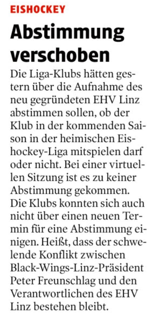 Ich glaube zwar auch nicht, dass dies in der Praxis funktionieren kann, ABER eine Frage muss man schon in den Raum stellen: Die Linzer Eishalle kann von jedem Verein angemietet werden, oder? Warum sollte dies dann nicht für den EVL und den PF-Verein gelten? Zumal der EVL ja sogar ein Sponsoring von der Linz-AG bekommen würde, was man so liest.