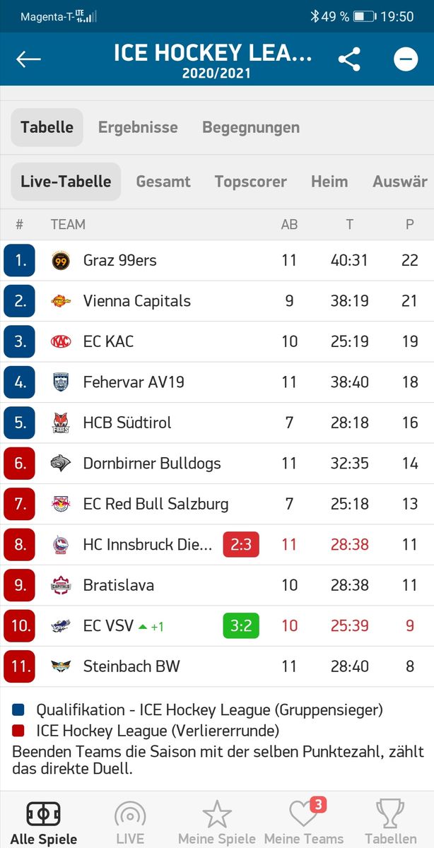 Der VSV ist nicht gewillt seinen Platz zu räumen. Verliert im PS und macht einen Zähler gut.