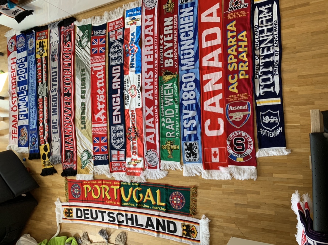 Verkaufe diverse Eishockey/Fussballschals und Fahnen aufgrund von Platzmangel weil das 2.Kind kommt und jetzt das Zimmer nicht mehr als Abstellraum verwendet werden kann đ