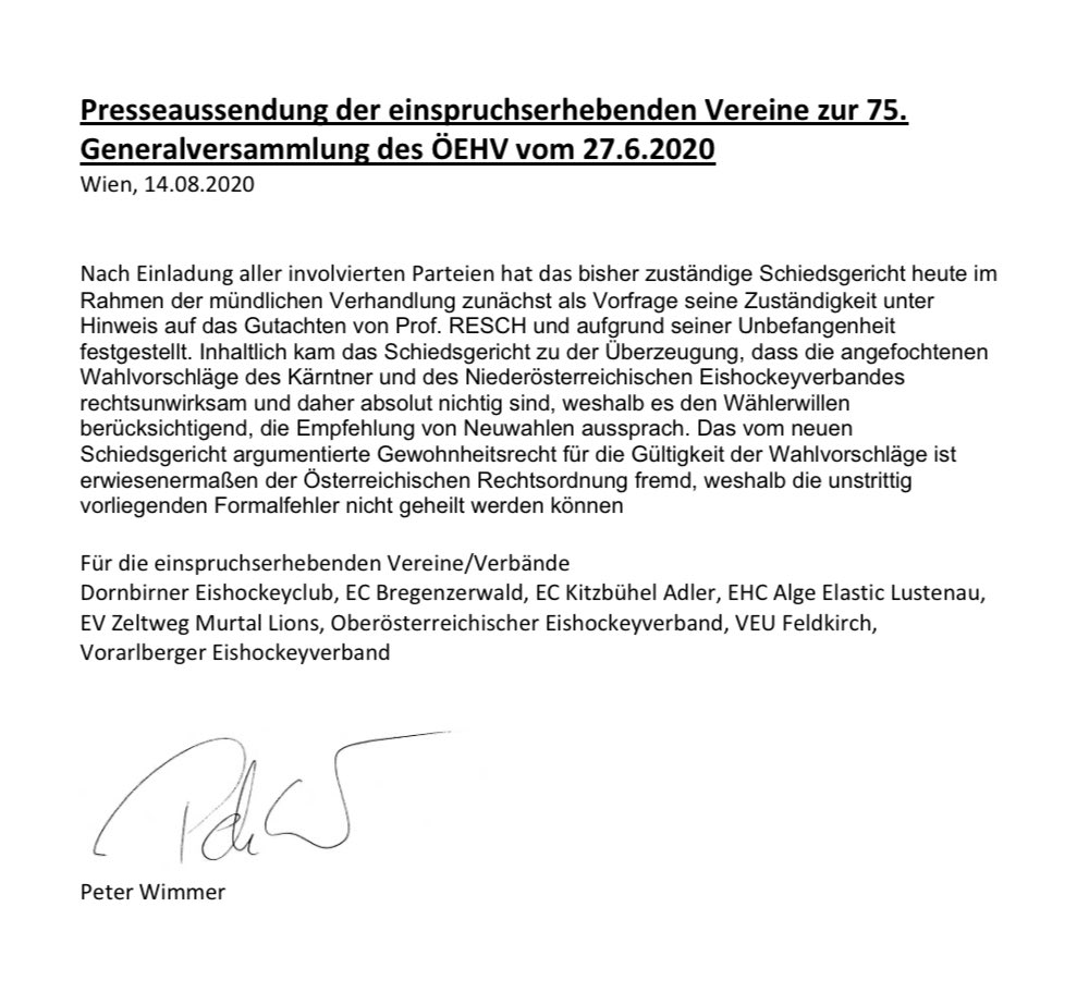 Im ÖEHV denkt wohl niemand an eine Neuwahl. Wenn, dann die Verlierer, die das demokratische Ergebnis nicht akzeptieren wollen. Diese Worte von Hartmann sind absolut richtig: