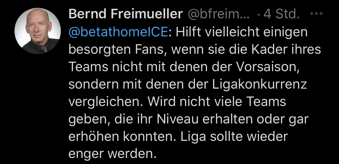Da leider das eingetreten ist, was man realistisch erwarten konnte, besteht jetzt nur die Hoffnung, dass die anderen ICE Teams adäquat an Spielstärke verloren haben.