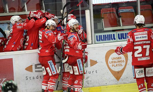 Steffler und Vallant (vor der Bande) erhalten von ihren Mitspielern das physische Lob © Kuess