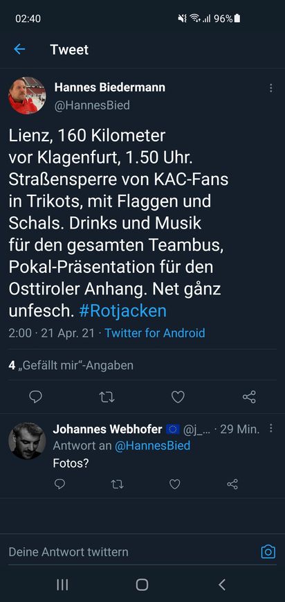 Ich gehe davon aus, dass der KAC spätestens im Sommer eine Feier am Neuen Platz machen wird. Dann kann ich euch endlich umarmen :prost: