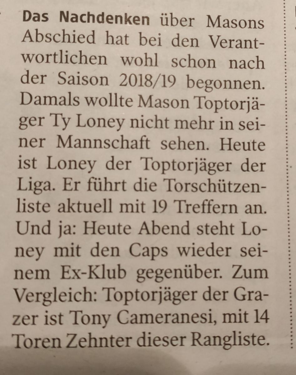 Dazu hat er sich in den letzten Wochen aktiv nach einem neuen Verein umgesehen, ich glaube, dass spätestens hier klar ist, dass man so einen Spieler nicht halten kann. Entweder bin ich noch in Graz und gebe alles für das TEAM, ansonsten ist man fehl am Platz. Da können seine (offensiven) Leistungen am Eis noch so super sein, wenn er diese nicht fürs Team sondern für sich selbst als Spieler produziert passt etwas nicht.