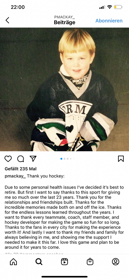 MacKay hat gerade auf Insta gepostet, dass er seine Karriere beendet.