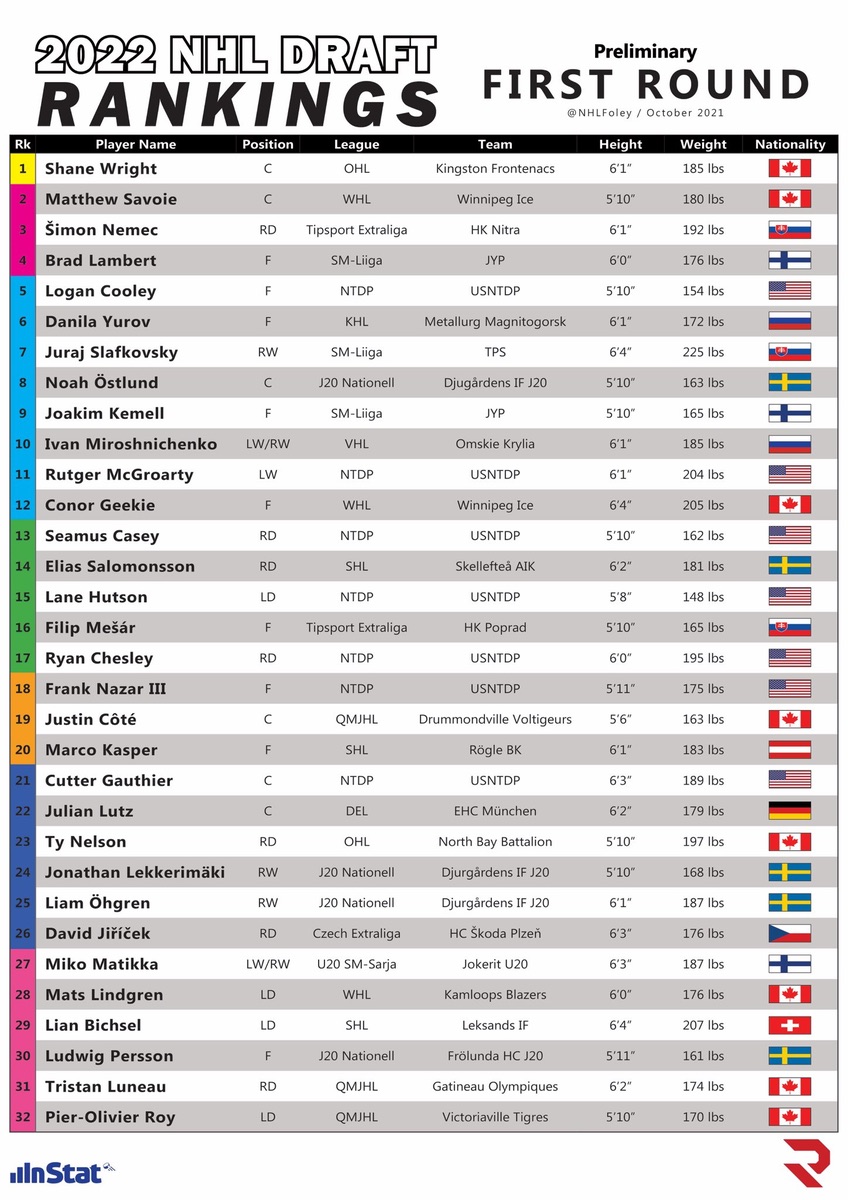 Diese Liste für den NHL Draft 2022 ist auf Twitter aufgetaucht, Kasper wird hier an 20.ter Stelle geführt! :thumbup: :prost: