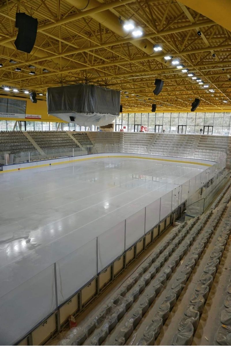 Auf dem folgenden Video sieht man bereits die Eisfläche mit den Werbeaufsschriften: