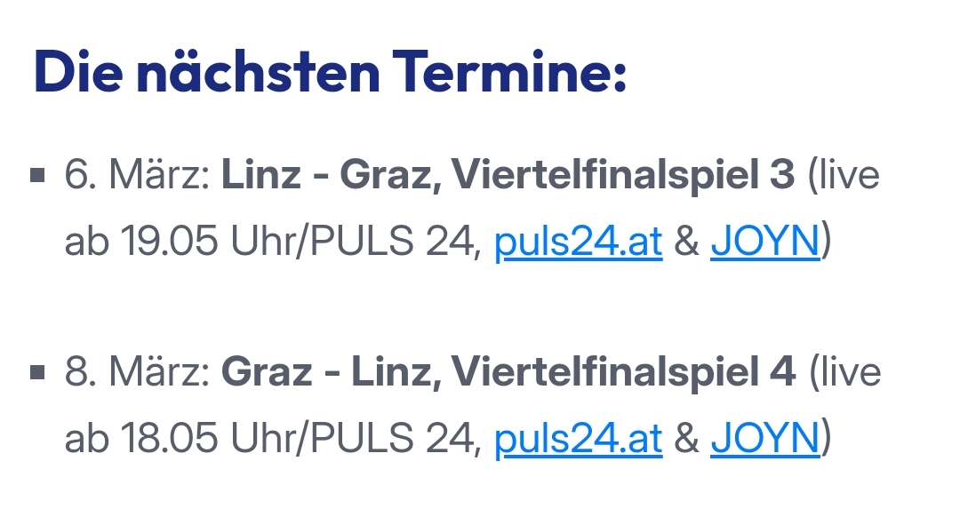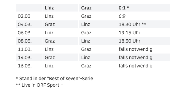 Am Donnerstag zeigen sie in Puls24 das 3.Spiel von Linz vs. Graz.