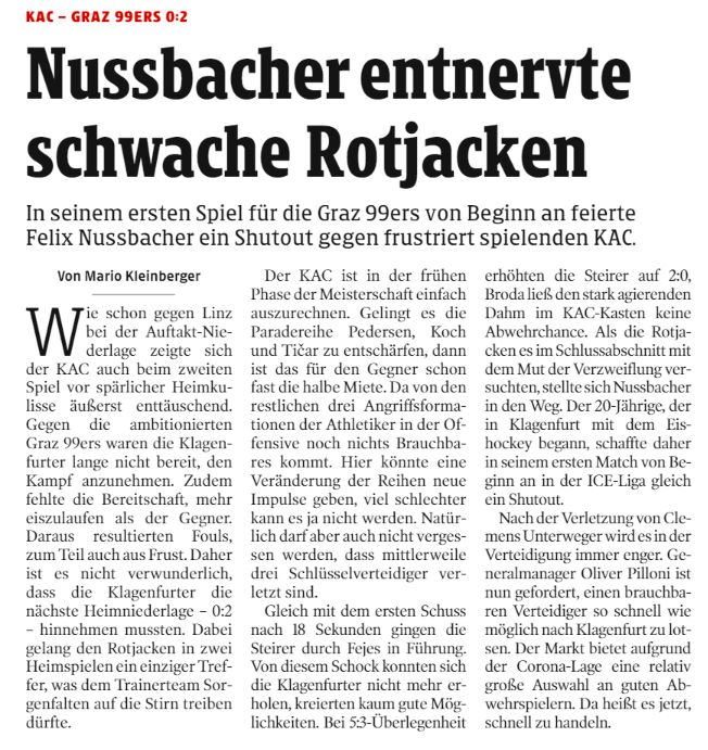 Würde mich auch interessieren. Dieses Problem mit der mangelnden Einstellung kann ich mittlerweile nicht mehr hören, vor allem - weil man als österreichischer Spieler beim KAC sowieso mehr oder weniger pragmatisiert ist. Wenn ein Legionär in der 2. Linie die Leistung eines Ganahls oder Hundertpfund bringt (und ja sorry, heuer muss man diese Spieler mit Legionären vergleichen, da sie genau diese ersetzen sollen), dann ist der spätestens im November weg. Zumindest bei anderen Teams ;)
