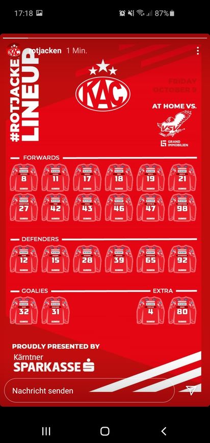 Sollte der KAC in Führung gehen, traue ich Ihnen auf jeden Fall auch einen Sieg mit ein od. zwei Toren zu.