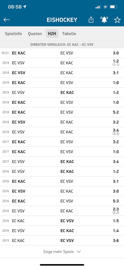 So prickelnd waren die letzten Derbys, als VSV Fan, tatsächlich nicht. Aus den letzten 20 hat der KAC 12 gewonnen, 3 unentschieden, wobei davon alle 3 der KAC gewonnen hat, 2 mal Nachverlängerung und einmal nach Penaltyschießen, 5 Siege des VSV.