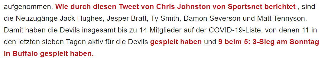 Naja, schlechte spiele wird es immer wieder geben, ich hoffe jetzt mal dass Hischier, Bratt, Vatanen und Butcher bald dazukommen, ein paar müsste man dringend austauschen, Johnsson zb. der war in allen 4 spielen luft.