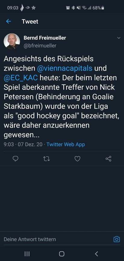 Unterhaltsames Spiel mit vielen guten Offensivaktionen des KAC. Insgesamt schön anzusehen. Mit Petersen bin auch ich milder im Urteil, denn er hat etliche feine Pässe gespielt und guten Kampfgeist in allen Zonen gezeigt. Die Tore kommen schon noch. Dahm hat beim GWG der Wiener etwas patschert ausgesehen, aber da mag der Eindruck von außen täuschen.