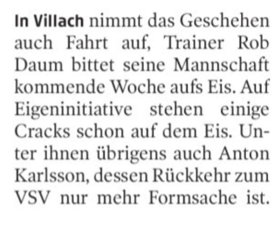 Ich freu mich schon so auf das erste Eistraining und die Preseason. Bin echt schon gespannt wie sich die Truppe präsentiert und was Daum, mit "seinen" Spielern, zusammenbringt. Auf das Ranking lass ich mich heuer gar nicht ein, ich hoffe einfach wir sehen endlich wieder attraktives Hockey in Villach.