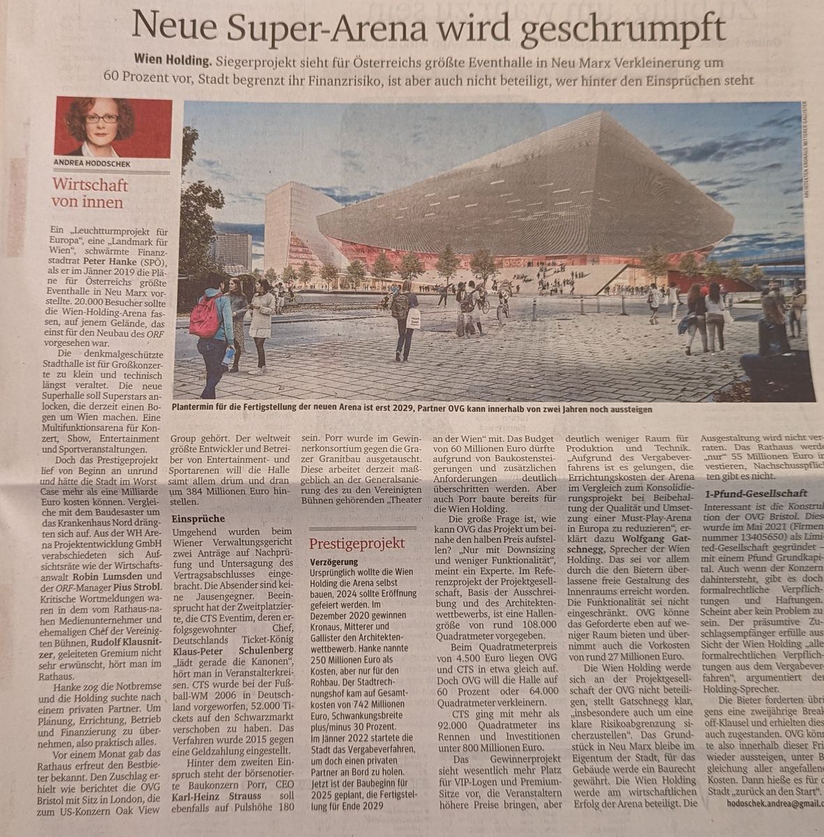 Wien-Holding-Arena: Österreichs größte Eventhalle wird geschrumpftDownsizing auf 60 Prozent, Stadt begrenzt ihr Finanzrisiko, ist aber nicht beteiligt. Partner OVG kann innerhalb von zwei Jahren wieder aussteigen.kurier.at -