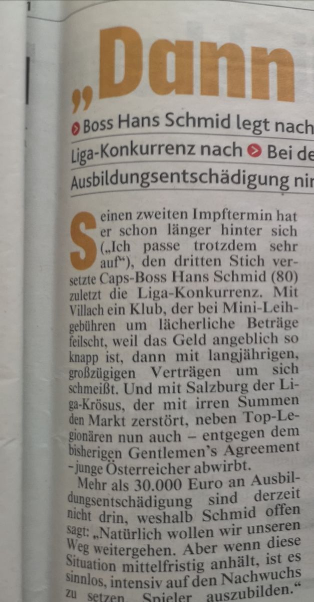 Einen Richter sollte man jedenfalls halten können, da geht es schon auch ein wenig um (finanzielle) Wertschätzung von Österreichern. Schließlich reden wir hier von den Caps und nicht Innsbruck oder Dornbirn, und die Caps müssen wirklich nicht so tun, als wären sie allen Abwerbeversuchen der Konkurrenz völlig wehrlos ausgeliefert.