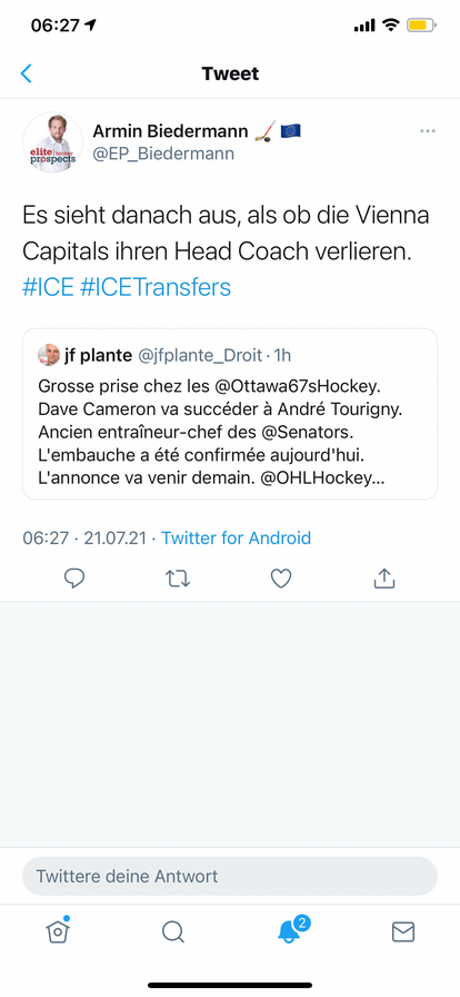 Großer Fang bei @Ottawa67sHockey. Dave Cameron wird André Tourigny nachfolgen. Ehemaliger @Senators-Cheftrainer. Die Einstellung wurde heute bestätigt. Die Ankündigung kommt morgen. @OHLHockey