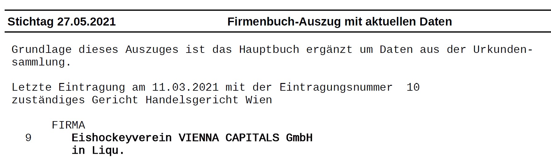 Die genutzte Gesellschaft heißt Vienna Capitals ProfiBetriebs Gmbh