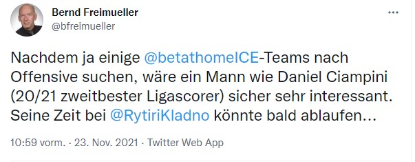 Wenn die bisherige Zurückhaltung von Pilloni letztlich einen Ciampini an den Wörthersee bringt, hat er alles richtig gemacht. Aber um einen Torjäger wie ihn wird sich halb Mitteleuropa raufen, wobei laut Eishockey News die meisten DEL-Manager um Ex-ICEHL Spieler einen Bogen machen, weil man damit fast immer eingefahren ist.