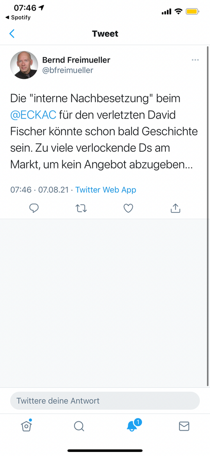 Ich glaub wir alle hier können die offizielle Kommunikation mittlerweile ganz gut übersetzen Popcorn . Wenn’s hochklassigen Ersatz gibt, er ins System passt und er nach Klagenfurt kommen will, wird’s sicher einen 2. Legio in der Verteidigung geben.