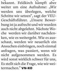 Wenn ich mir diesen Artikel, erschienen in den Vorarlberger Nachrichten am Samstag, ansehe, ist es schon ein Armutszeugnis. Sie werden wieder einen Antrag einbringen. Wenn die Vereinsverantwortlichen keinen Grund der Liga erhalten, warum sie nicht genommen wurden, ist es halt schwierig, an gewissen Stellen nachzubessern.
