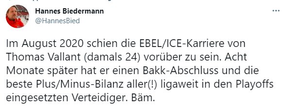 Beim Spielentscheidenden Tor hat Hundi wiederum bewiesen, was er für die Mannschaft wert ist. Für mich bisher der MVP der Play Offs, noch vor Petersen zustellen.