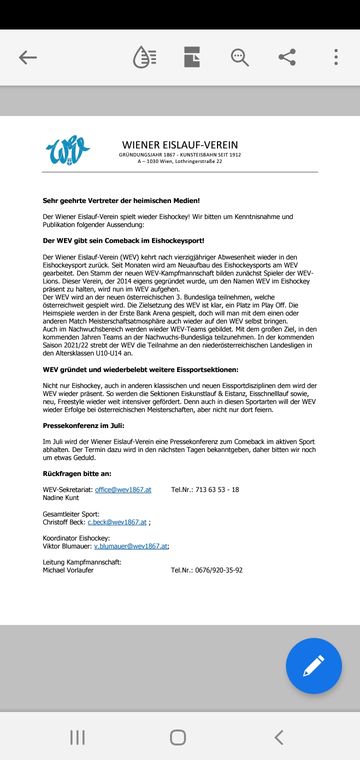 Ich glaube die reden vom "echten" wev. Dazwischen war's ja Mal der w-ev oder Wiener Eislöwen Verein wenn ich mich Recht erinnere