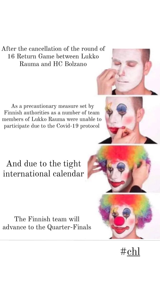 So langsam kommen die Details ans Tageslicht. In Rauma wusste man schon am Montag von den ersten positiven Fällen. Da war schon absehbar, dass die Behörden das Spiel nicht erlauben würden. Ein Telefongespräch hätte gereicht und Bozen wäre am nächsten Tag nicht über München/Helsinki angereist. 🤡