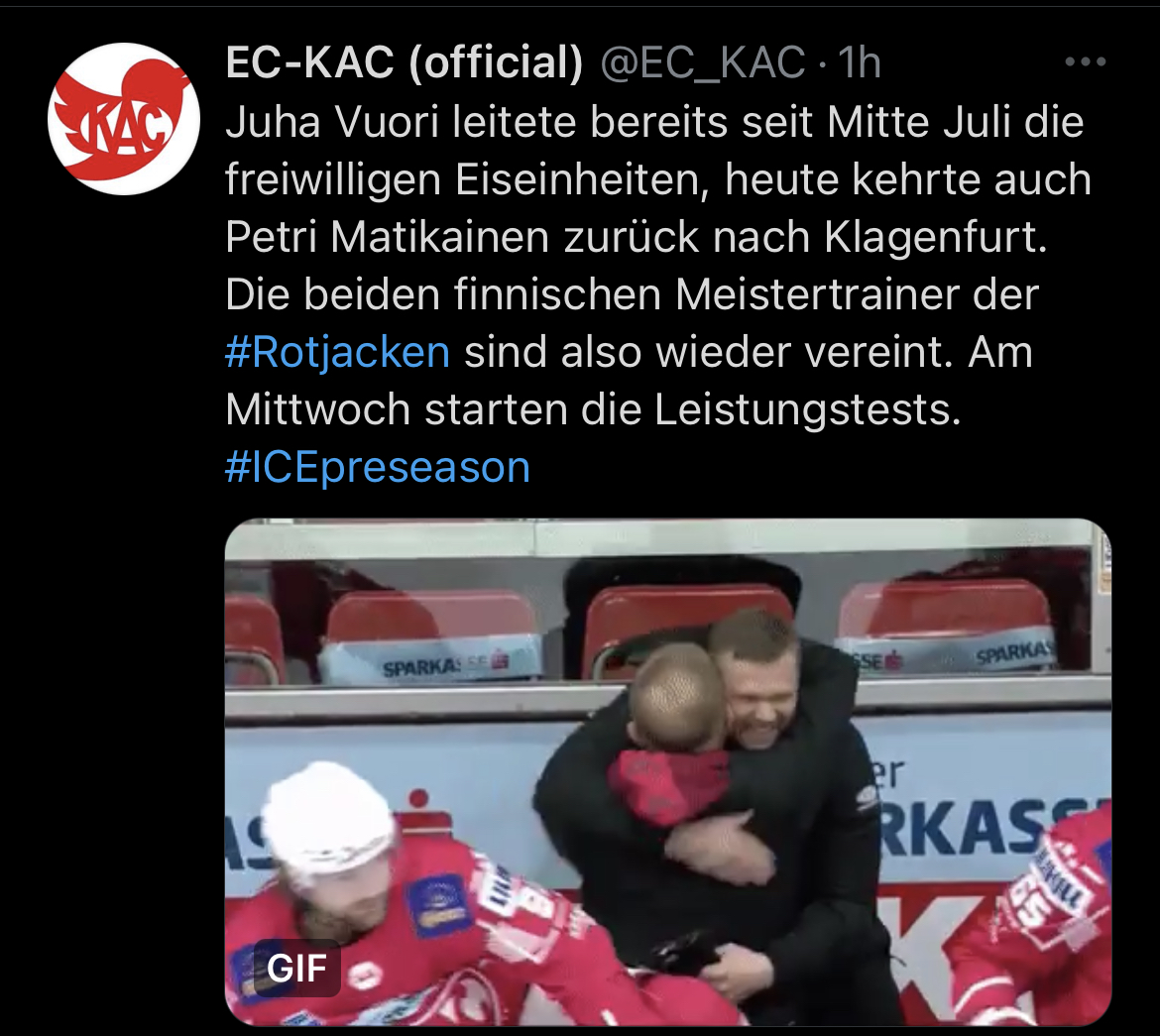 Ich denk das liegt daran, dass der KAC das Glück hat das die Mannschaft und der Trainer sich schon vollends kennen und sicg eine "schlechtere" Vorbereitung nicht so extrem auswirken sollte :prost: