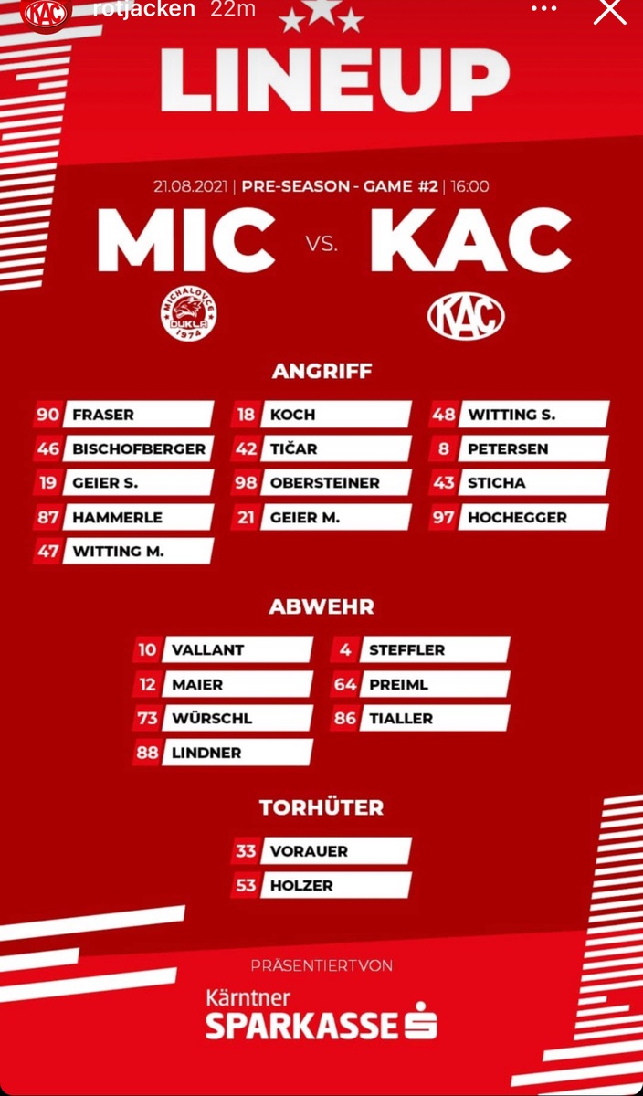 Um Siege in der Preseason kannst dir halt nunmal nix kaufen, da gehts maximal um die goldene Ananas. Wenn man einen Blick aufs Kaderblatt wirft, sollten die Ergebnisse auch eigentlich nicht überraschen. Wie die ICE in irgendeinem Spaß Turnier wo es um absolut nix geht präsentiert wird kann dem KAC herzlich wurscht sein. Keine Angst in der CHL sollt die Sache wieder anders aussehen ;)