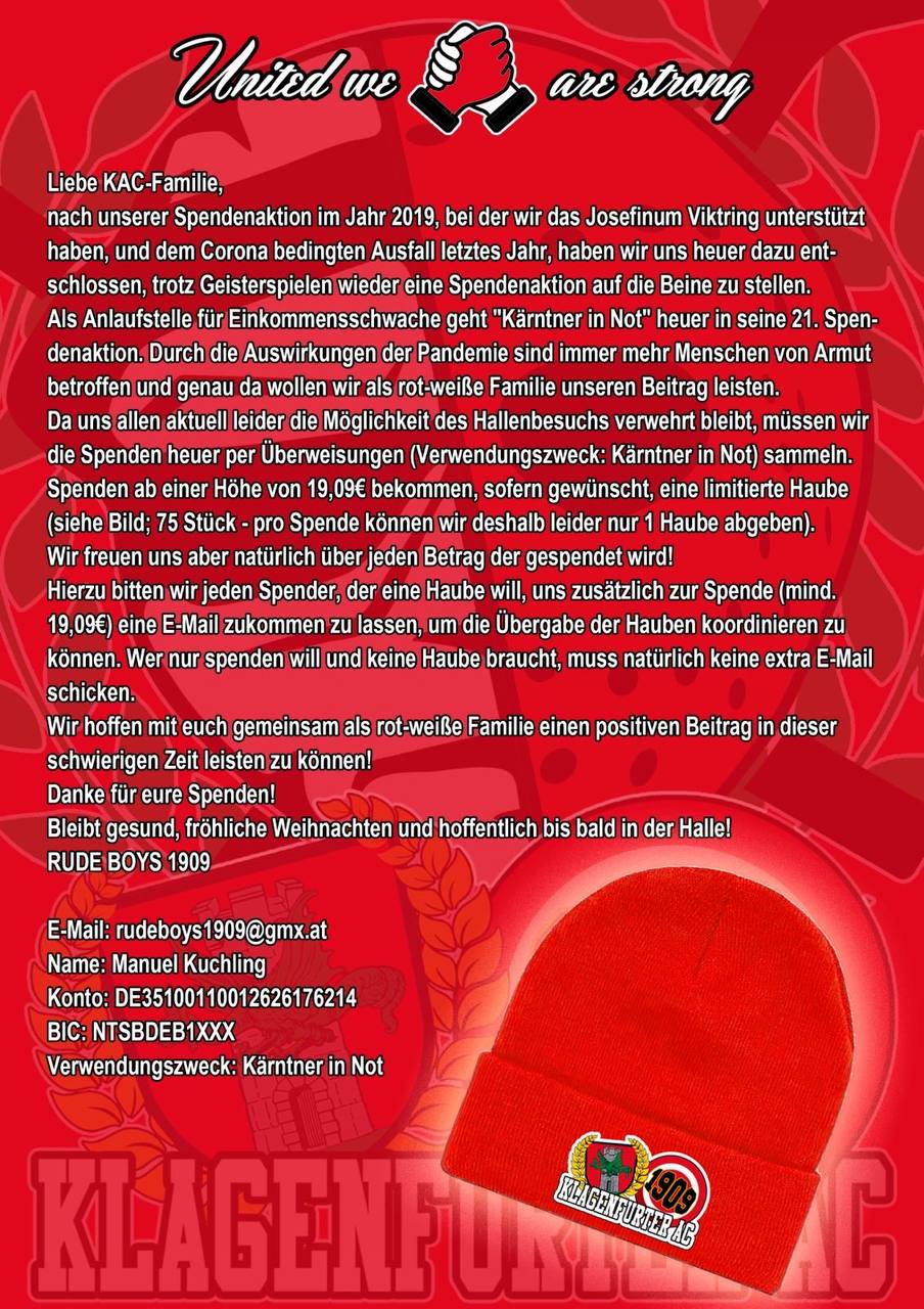 Gerüchteweise findet der Lockdown ja wieder wegen dir statt, dass der KAC ohne Fans gewinnen kann :prost: :prost: