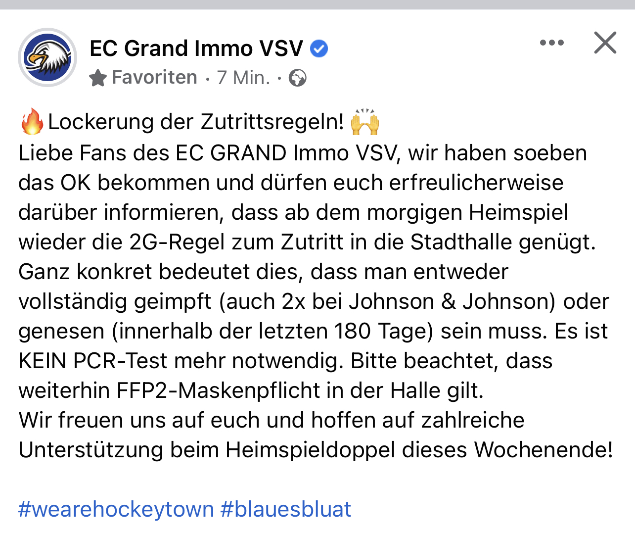 Schade nur, dass uns Corona derzeit noch auf den Sack geht und die Lockerungen wohl nur sehr zögerlich kommen werden, sonst könnte sich in Richtung post season wieder richtiges Hockeyfieber in Villach einstellen...