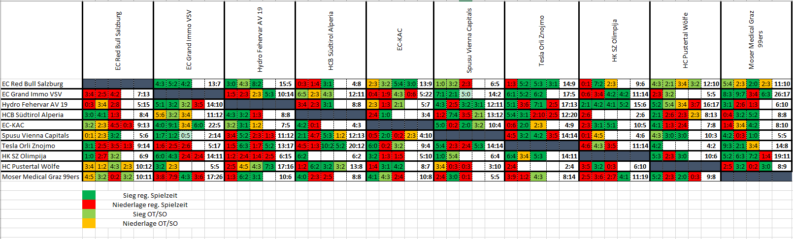 Wenn ich in der Zeile KAC vs VSV schau ist 4:0, 9:1 ect. in grün