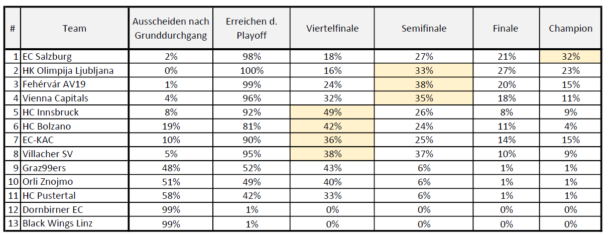 Bozen war bis jetzt immer in den Playoffs. Also nix mit 19% ausscheiden nach dem Grunddurchgang. ;)