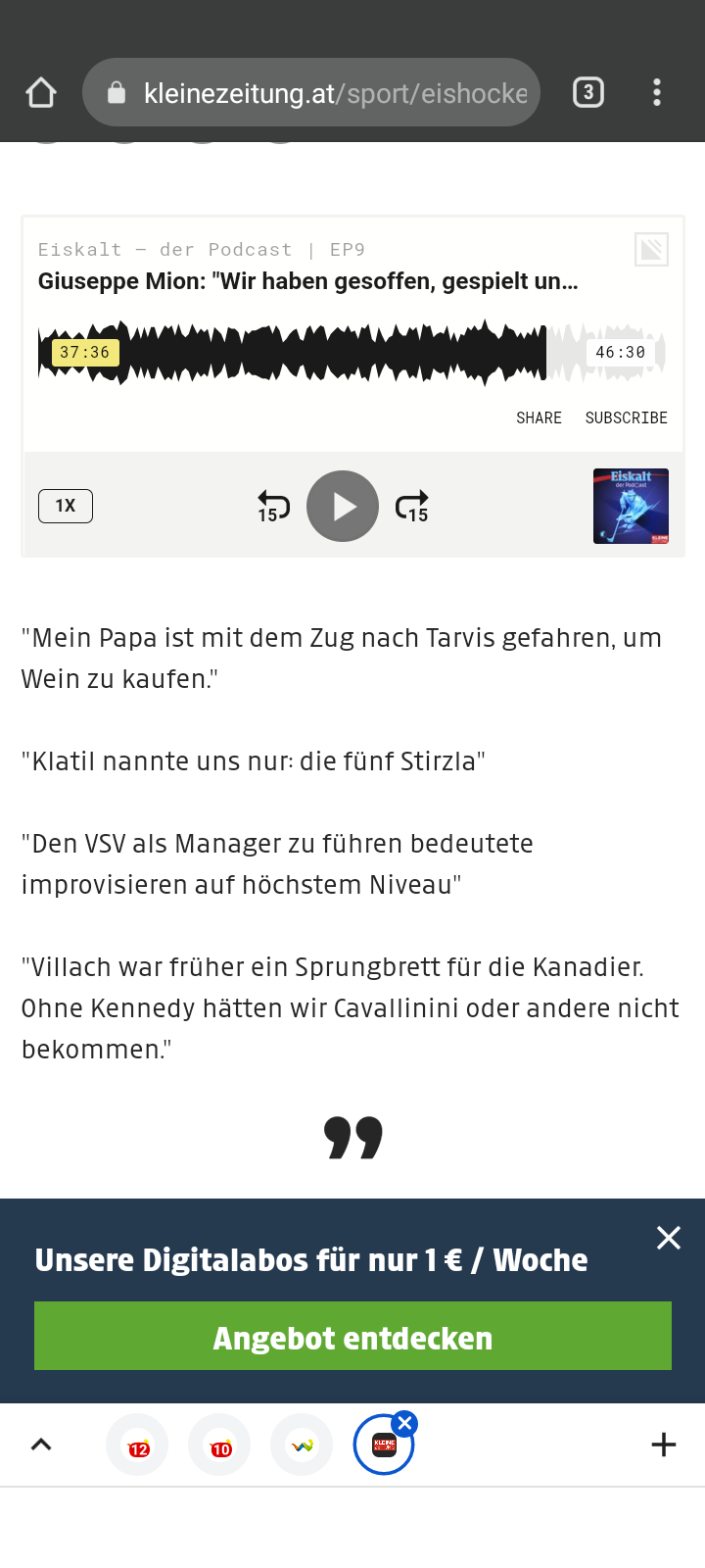 Neue Woche, neue Eppi von "Eiskalt - der Podcast". Der Villacher Giuseppe Mion (62) war der letzte Meistermacher des VSV. Er erzählt seine Familiengeschichte,…