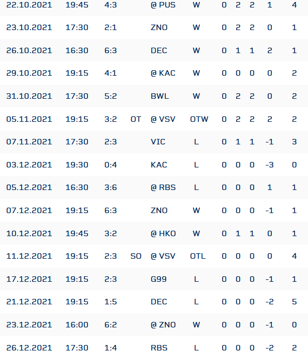 Mit Ausnahme der beiden Spiele gegen Znojmo hat man in den restlichen 8 Spielen seit der Coronapause 12 Tore erzielt - macht einen Schnitt von 1,5 Toren pro Spiel. Damit gewinnt man leider nicht viele Spiele im Eishockey.