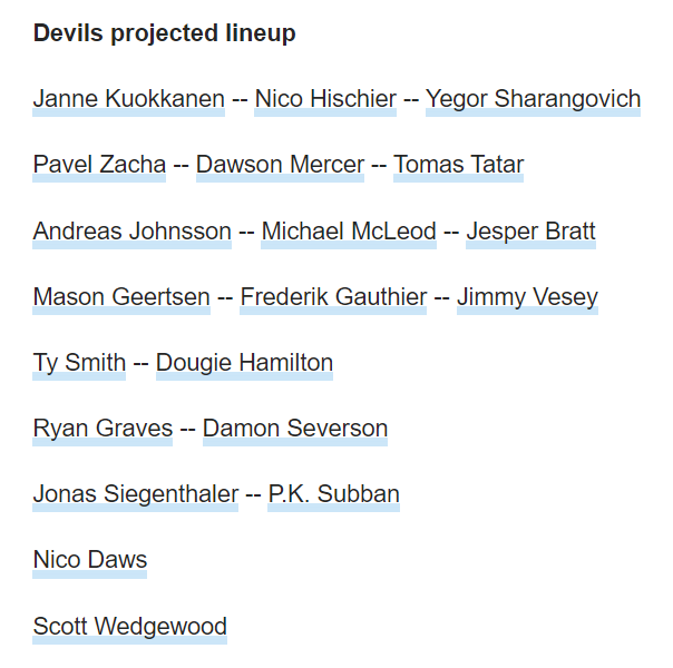 Kuokkanen und Sharangovich endgültig mal nur in die 3. und 4. Linie gesteckt derzeit. Die beiden tun sich extrem hart, da fortzusetzen, wo sie letztes Jahr waren. War fast zu befürchten. Bratt endlich mal mit einer wichtigen Aktion wie dem GWG. Bei dem hatte ich zuletzt auch schon immer mehr so meine negativen Gedanken.