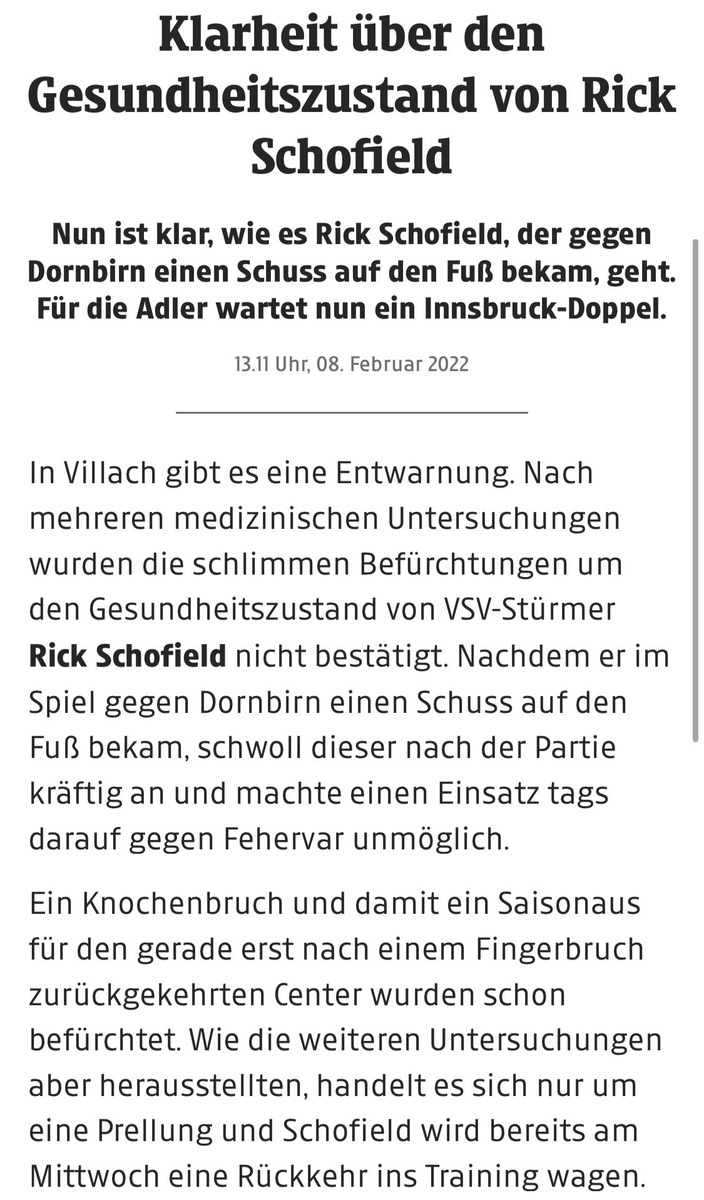 Hat wieder gespielt nach dem Unglück und hat auch ganz normal gewirkt, Gesichtsverletzungen werden im Hockey ja normal nicht zu tragisch genommen, da wird dann halt mit Visier gespielt