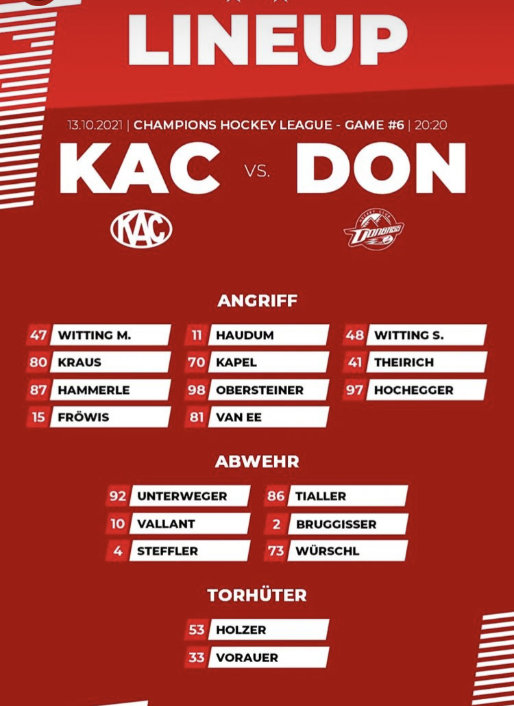 Einerseits cool, auf der anderen Seite hätte ich Jakob Holzer für sein erstes Bewerbsspiel für den KAC ein etwas erfahreneres lineup gewünscht. Ihm wünsche ich echt alles Gute!