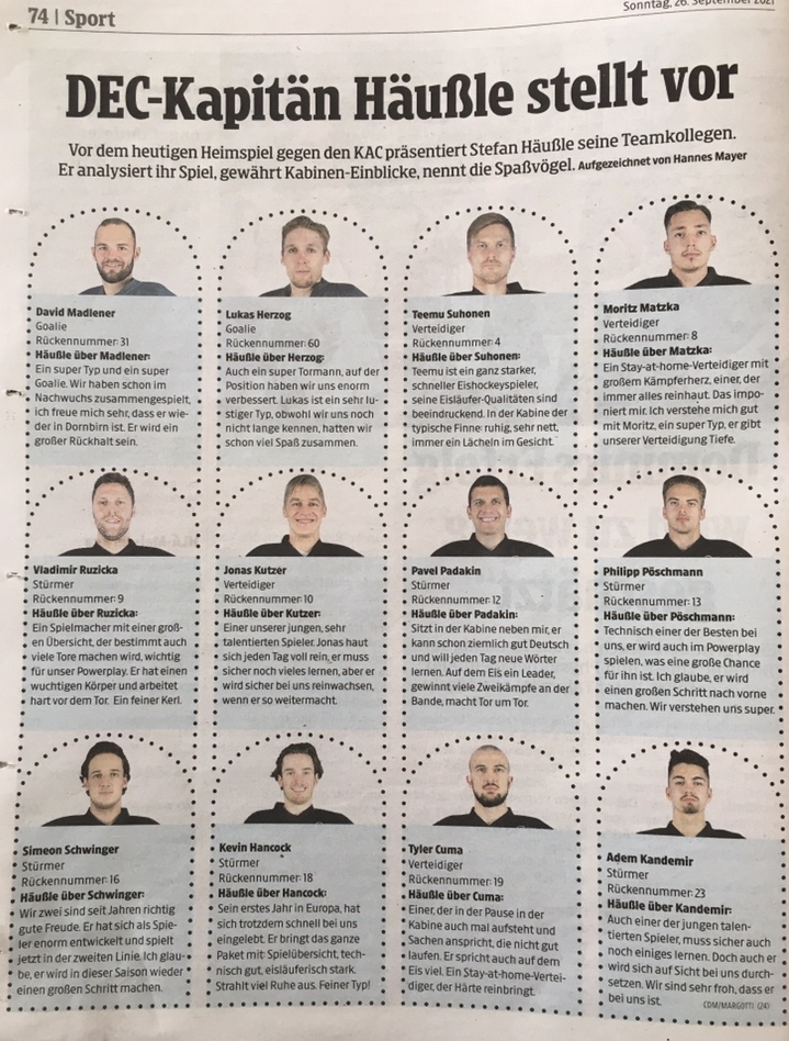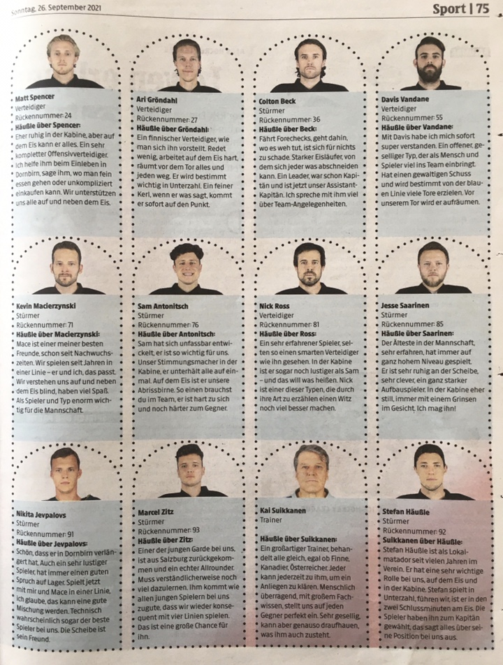 "Eine Veränderung gibt es auch im Offensivbereich: Samuel Witting rückt (an Stelle von Dennis Sticha) wieder in den Block mit Thomas Hundertpfund und Johannes Bischofberger auf."
