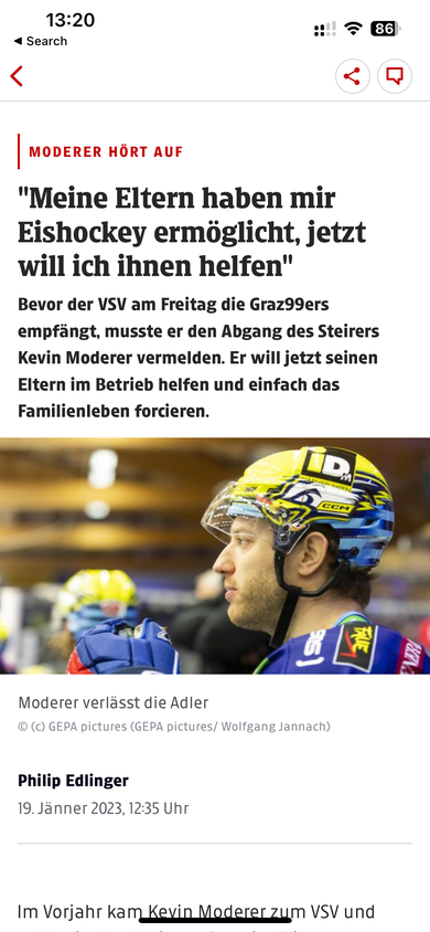 iwie ein bisserl seltsam ist es schon, dass er mitten unter der Saison aufhört aber wie ein User vorher schon geschrieben hat: es gibt auch ein Leben nach dem Eishockey.