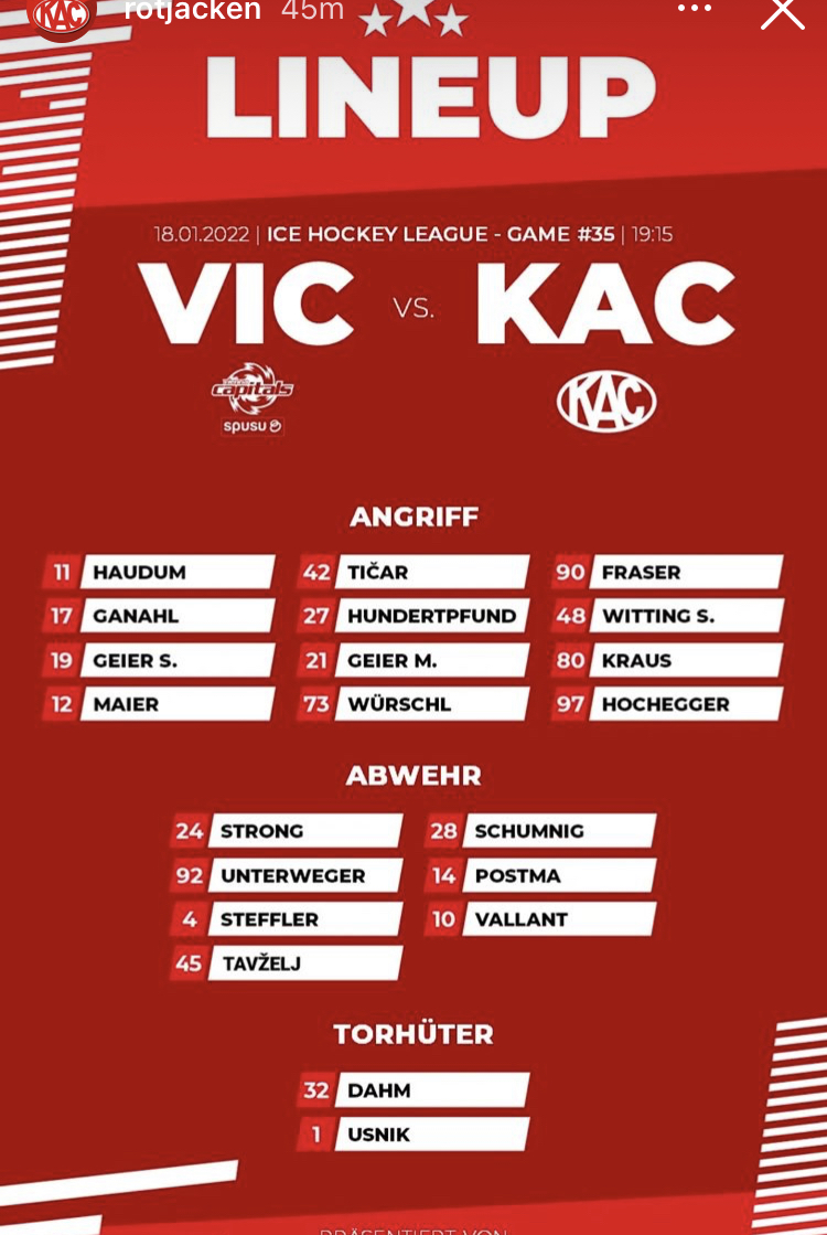 KAC weiterhin mit 2 Verteidiger im 4. Sturm.