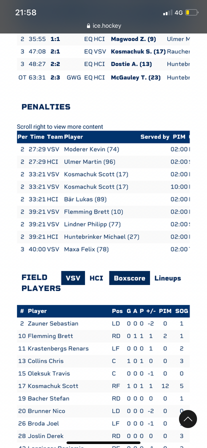 Sehr unterhaltsame und wirklich attraktive Partie. Es macht Spaß zuzuschauen. Innsbruck hätte sich max 1 Punkt verdient, aber so ist es halt. Für die Tiroler läufts im Moment, da machst sogar heute 2 Punkte aus nix.