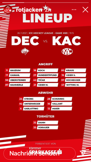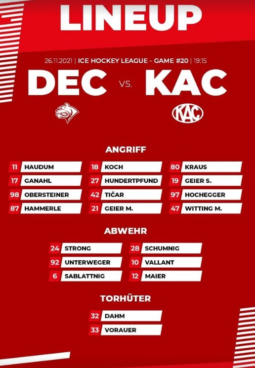 dem KAC fehlen 12 Spieler und ein 18jähriger aus der Alps spielt heute zum ersten mal in der D.