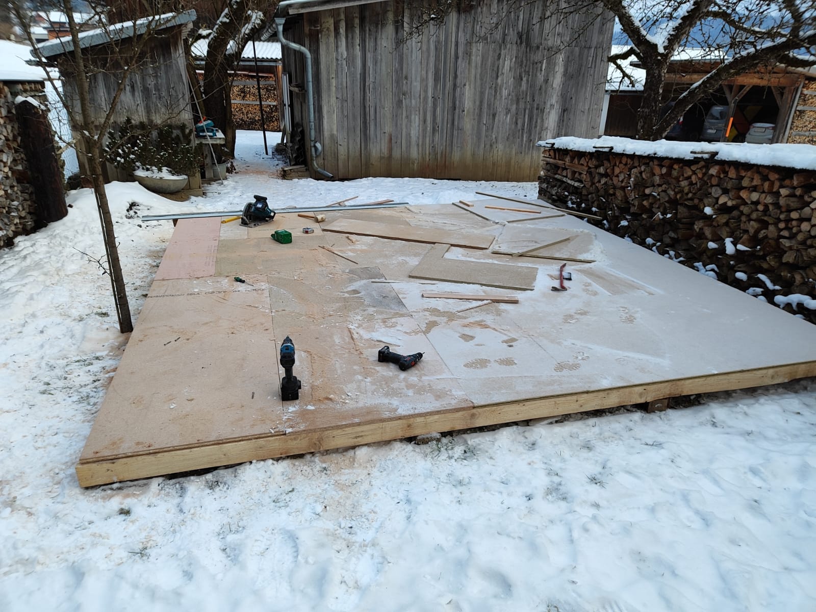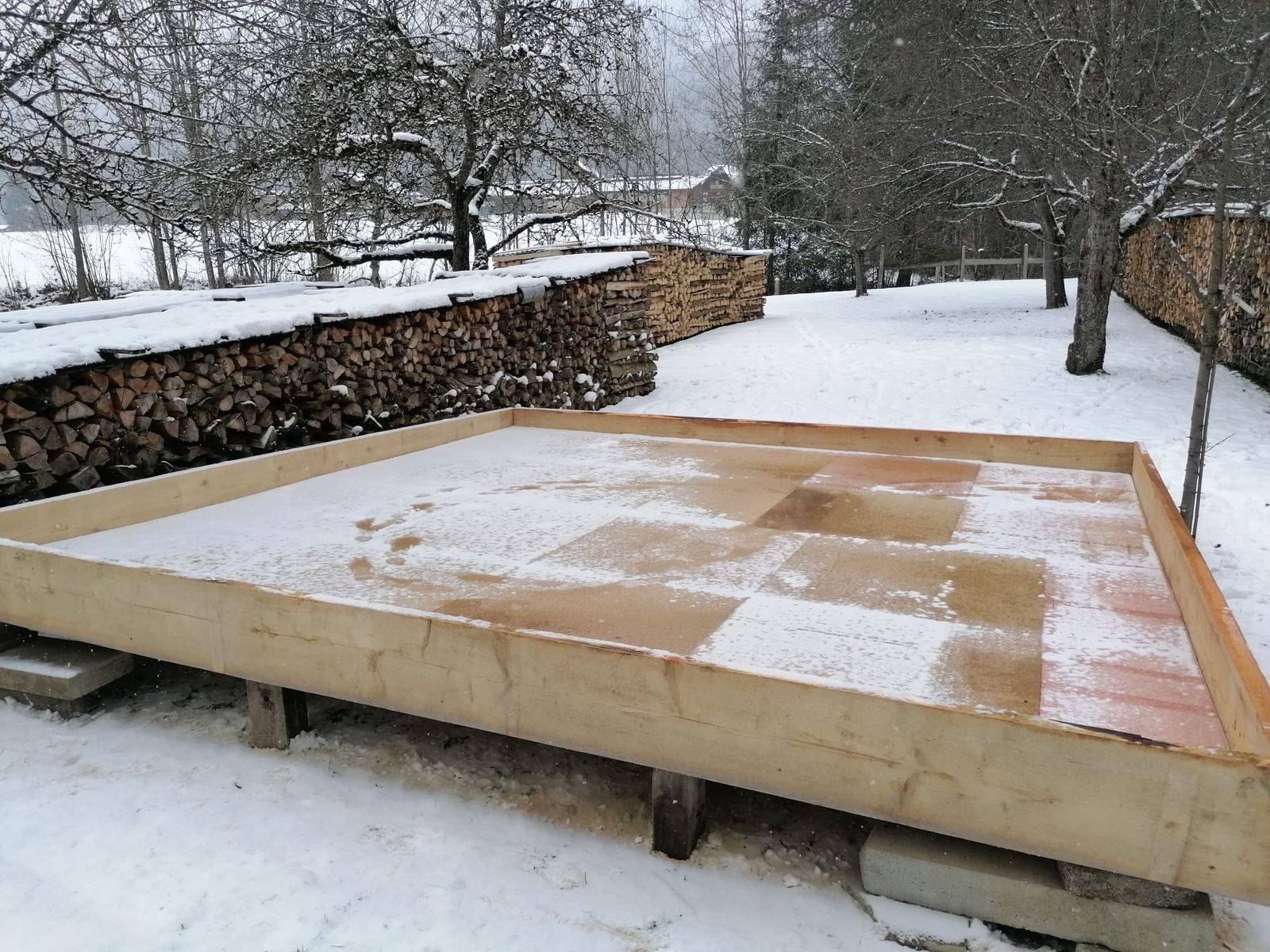 sis wieder soweit, die Nächte sind bitterkalt in Kärnten, tagsüber im Schnitt -5 Grad und ein Todl stand Montag Abend 4Std im Garten und hat seinen Outdoorrink bei 2stelligen Minusgraden fertig aufgebaut...ich :D Den Holzrahmen habe ich schon vor 2 Wochen aufgebaut.
