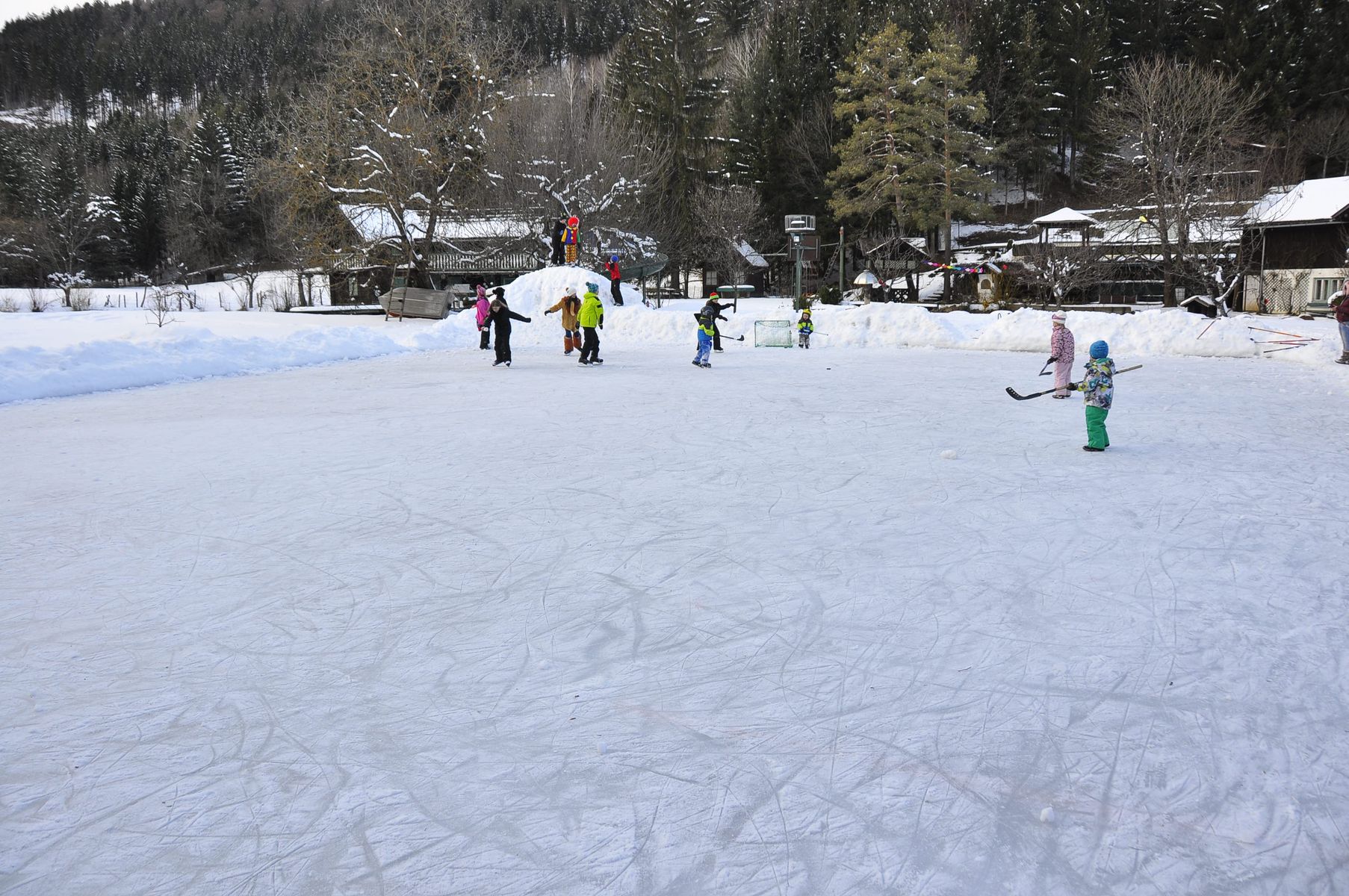 So wie jetzt da steht sinds im Mittel 5x12m also 60m2 Eis. Reicht für ein paar Übungen allein, oder eine Horde Kinder, oder leicht eingeheiterter Eisstockschützen (Lattaleschiaßn) :D .