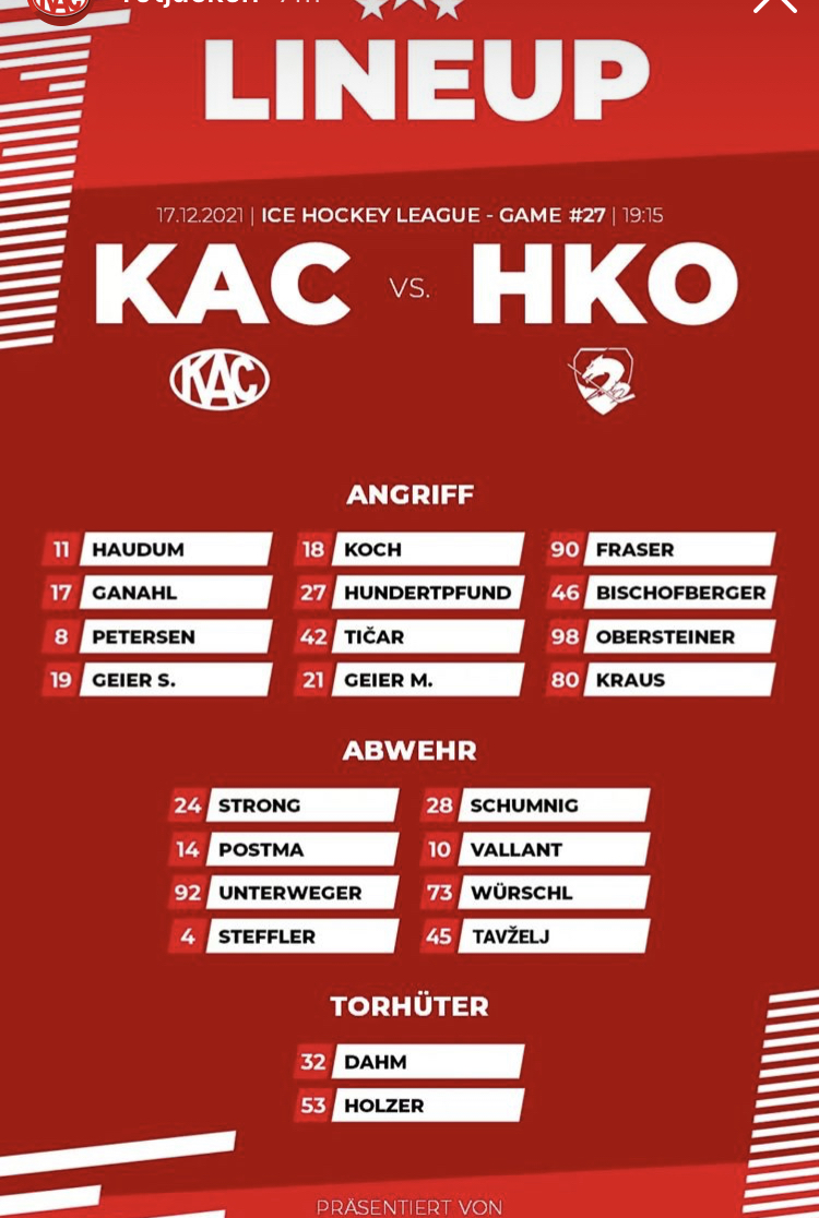 Obersteiner neben Ticar und Petersen hatten wir schon und da hat meiner Meinung nach die Durchschlagskraft der beiden Imports gelitten. Nach den letzten Leistungen müsste eigentlich Haudum Ticar/Petersen ergänzen. Stattdessen spannt er wieder das Trio Haudum-Koch-Fraser zusammen, das noch nie so richtig funktioniert hat. ![]()
